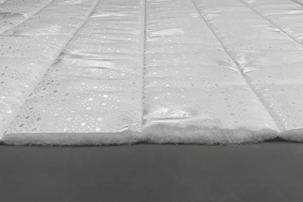 Верхнее покрытие матраса смесовый жаккард, стеганый на пене - высокопрочная ткань, состоящая из синтетических материалов с добавлением нитей из натуральных тканей с особым переплетением волокон. Смесовый жаккард может быть двойным (дублированным) или недублированным. Как правило, дублированный жаккард используют в качестве верхнего покрытия для матрасов, чехлов и наматрасников. Самой важной характеристикой ткани является его прочность и износостойкость.